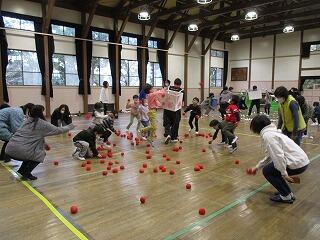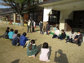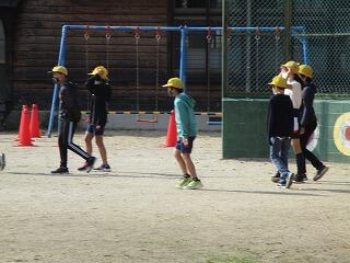 12月21日(火)の2校時に、6年生が1年生を遊びに招待してくれました。6年生は国語の学習で、わかりやすく伝えるための学習も兼ねています。1つ目の遊びは1年生が大好きな氷鬼、2つ目の遊びはボールけりでした。6年生が上手に説明し、1年生は6年生に上手に遊んでもらって「楽しかった!」と大喜びでした。