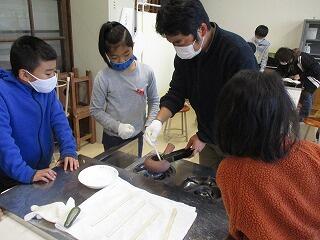 1月14日(金)に、3,4年生が社会科の学習の一環で、山城郷土資料館に社会見学に行きました。展示されている昔の生活の道具などを見せていただいたり、体験させていただいたりしました。今の生活と配べ、昔は手仕事が多かったですが、そんな中でも知恵を絞り工夫した生活をしていたことを学びました。
