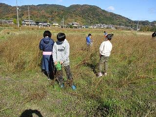 12月2日(木)、朝は冷え込みましたが日中は柔らかな日差しの温かな天気となりました。コスモス畑の花は枯れてしまいましたが、その後しっかり種を付けました。3,4年生が熟して黒くなった種を選別しながら、上手にバケツにたくさん種を取りました。取った種は、来年また種まきをします。