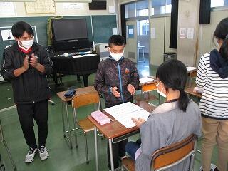 3月15日(火)、1~3年生が卒業や入学をお祝いするために校歌を歌いました。まずはお口ほぐし、体ほぐしのウオーミングアップを行い、その後、元気な歌声が響いていました。式には出席しませんが、歌に込められたお祝いの気持ちが届くと思います。