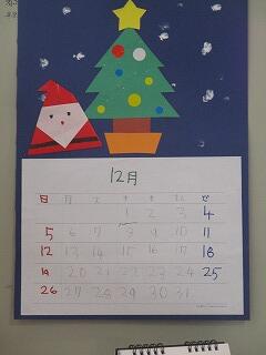 早くも12月になりました。そして、恒例のカレンダーがいづみ学級から届きました。テーマはサンタ!指押しした雪がチラチラ降っています。