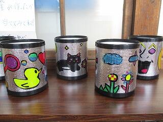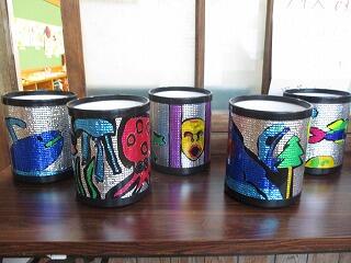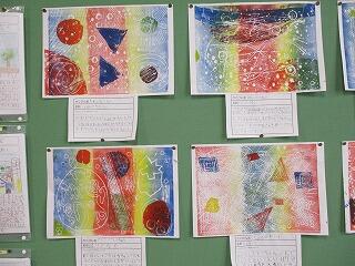 4年生が図工でステンドグラスの物入れを作りました。それぞれのテーマで、彩りを考えて仕上げていきました。仕上がった作品は個性にあふれていて、教室前の廊下に展示し誰の作品か当てるクイズをしています。