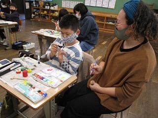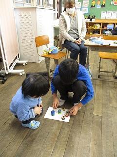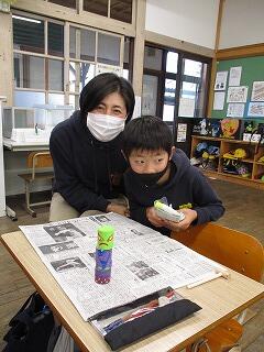 12月10日(金)、3年生のふれあい学級がありました。3年生はだるま落としの手作りです。イメージを膨らませそれぞれ個性的なだるまができ上がりました。子どもたちはできあがっただるまで、落とさないようにいろいろと試し打ちをしていました。