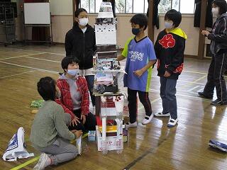 今日は、ICT支援員さんに指導いただきブルドーザーの動き(前後左右、速度)をプログラミングし、指令を送って動かしました。速度を変えることで動きが変わり、コースを動かしたり対戦したりしながらプログラミングの楽しさを味わいました。