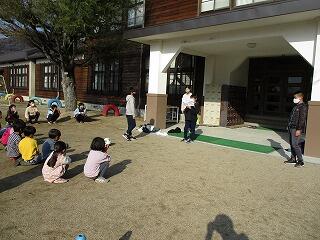 11月26日(金)に、サンガつながり隊に来ていただき、2校時に低学年、3校時に高学年がサッカーを通した仲間作りやゲームを楽しみました。1回の指示をしっかり聞いて、自分たちで声を掛けながら自主的に動けるようになり、指導技術の素晴らしさを感じました。子どもたちは、笑顔いっぱい仲間と交流を深めました。