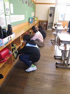 1月17日(月)、今日は27年前に阪神・淡路大震災が起こった日です。命を守る意識を高めるために、市の職員全員参加での訓練が行われました。本校でも、地震が起こった場合の行動の仕方について事前に学習し訓練を行いました。低学年の児童も低い姿勢で頭を守ること等がしっかりできていました。日頃から訓練をしておくことで、いざというときに対応できるようにしたいものです。