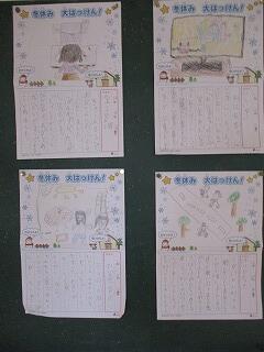 今年も心を込めて丁寧に仕上げた書初めを掲示しています。低学年はマジックで大きな紙に字を書く位置や大きさに気を付けて、3年生以上は毛筆で「はね」や「はらい」に気を付けながら力強く書きました。