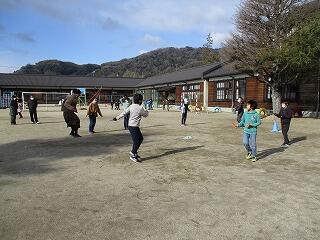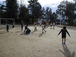 1月14日(金)、雪がちらつく寒い日になりましたが、今日から縄跳び月間が始まりました。中間休みになると、みんな縄跳びを持って運動場に飛び出し、学年毎に輪になって友達同士で数え会いながら記録を付けていました。これから月水金の中間休みは、全校で縄跳びを頑張ります。続けることで、どんどん上達していきます。