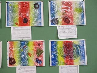 2年生がスチール版画に挑戦しました。各自、自分のイメージする宇宙をスチール板に描き、とてもカラフルで夢のような宇宙ができあがりました。
