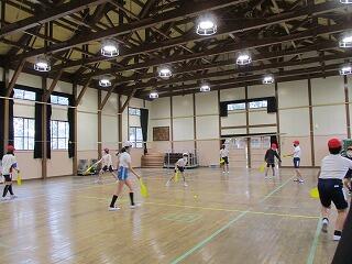 2月1日(火)、今日は2月1回目のクラブです。スポーツは講堂でタグラグビーをした後、ソフトボールバドミントンをしました。ソフトボールはシャトルより大きく、打ちやすくてラリーが続きました。