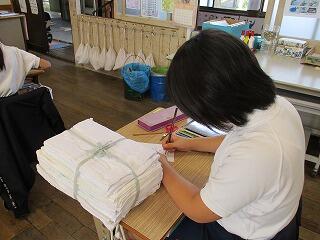 毎年秋のなると、恵美寿会女性部の皆さんから手作りのぞうきんを届けていただいています。今年もたくさんのぞうきんをいただき、4年生の子どもたちがお礼のお手紙を書きました。また、学校生活の中で大事に使わせていただきます。
