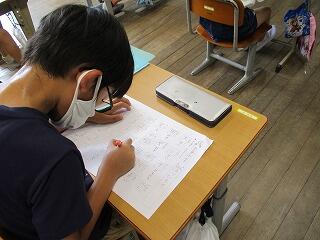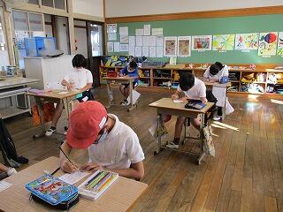 2学期が始まって3日目。本格的に学習が始まっています。朝学習では1学期に引き続き算数の学習を、昼のスキルアップタイムでは国語の学習を中心に進めます。今日のスキルアップタイムでは、1年生は2学期から習い始めた漢字学習に、他学年も新出漢字や既習漢字の復習などに一生懸命取り組んでいました。