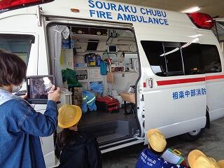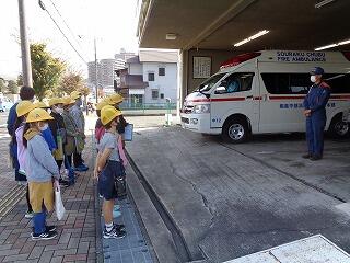 11月2日(火)の3,4校時に、3,4年生が相楽中部消防本部消防組合に社会見学に行きました。日頃、サイレンを鳴らして町中を走る救急車や消防自動車は見かけたことがありますが、車内や仕事のための設備や装備についてはなかなか知る機会がありません。今回の見学では、救急車等の車内の様子や仕事について詳しく教えていただきました。