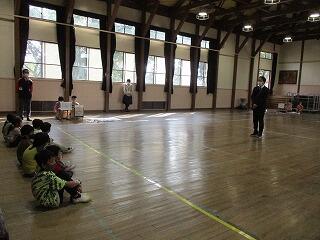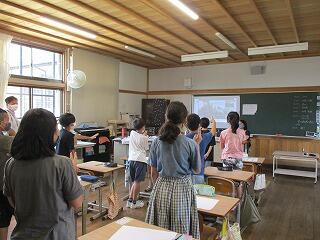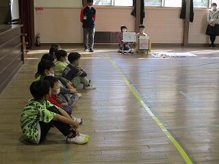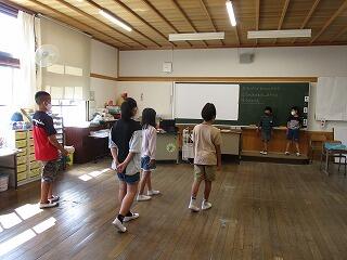 10月26日(火)、今日の昼休みに全校遊びを行いました。今日は、林間学習に向けての練習を兼ねて、5年生が司会進行役です。遊びはジャンボじゃんけんと〇✕クイズでした。はっきりした口調でわかりやすい進行で全校児童が楽しむことができました。