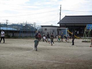 10月12日(火)、今日は朝からどんよりした空模様でしたが、昼休みには陽が差してきて、外で全校遊びを楽しむことができました。今日の遊びは、けいどろです。最初は6年生が鬼をしてくれ、下学年は走るのが速い6年生に捕まえられないように必死です。低学年には、少し手加減しながら思いやりある優しい一面も見られました。