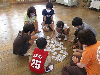 10月5日(火)の昼休みに、10月初めてのなかよし班遊びをしました。外は夏のような暑さだったので、室内遊びをしました。黒髭ゲームやだるまさんが転んだ、数字記憶ゲームやトランプなど縦割り班で楽しみました。