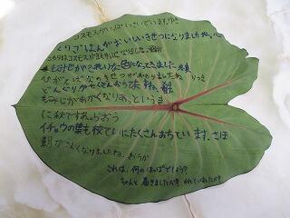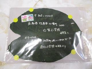 今日は4年生の道徳の学習で、お手紙と切手について学び、葉っぱなどでも手紙として出せることが分かりました。そこで、早速4年生は畑にある里芋の大きな葉っぱを活用して、仁賀小学校の4年生にお手紙を書きました。上手く届くといいのですが、、お返事が待ち遠しいです。