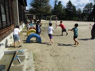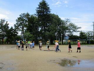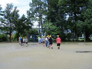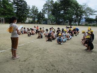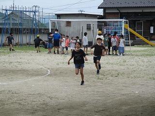 7月6日(火)、今日は7月初めての全校遊びの日です。遊びは、高学年が順番に鬼になってくれ、ケイドロをしました。子供たちは、捕まらないように思いっきり楽しそうに運動場を走り回っていました。