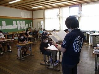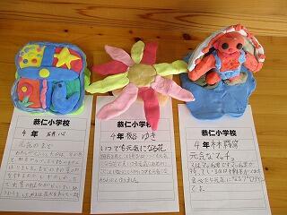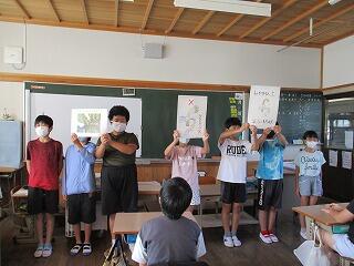 4年生が広島県や東京都の八丈島にある小学校と文通を始め、その輪が広がって、今では全校で広島県に仁賀(にか)小学校と文通をしています。