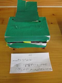 6月25日(金)の参観日には、子どもたちの作品をたくさん見ていただきましたが、教室や廊下には子どもたちの作品が展示されています。どの作品も、子どもたちの思いがこもっている工夫された作品ばかりです。今回は、2年生の「くしょくしょぎゅっ」の作品と「新聞でへんしん」を紹介します。
