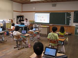 低学年も、年間10時間外国語活動を行います。今日は2年生が、気分を表す言葉や色の学習を行いました。気分を英語で聞かれ、少しはにかみながらジェスチャー付きで応えていました。色見つけゲームでは、鬼が英語で発音した色を探して、とても楽しそうに教室内を巡っていました。心を大いに解放して、楽しく外国語に慣れ親しめることを目指します。