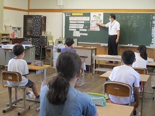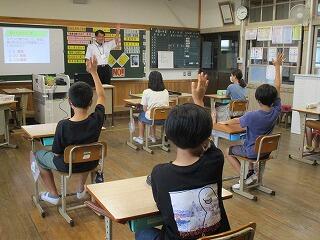 7月15日(木)の3校時に2,4,6年生が、スクールサポーターにお世話になり、非行防止教室を開催しました。テーマは良いことと悪いことをしっかり判断して、正しい行動ができる人になることです。万引きや暴力に関わる犯罪についてやスマホやゲームの怖さ等を教えていただきました。特に、低学年の2年生にも分かりやすいように、紙芝居やクイズを交えた工夫もありました。