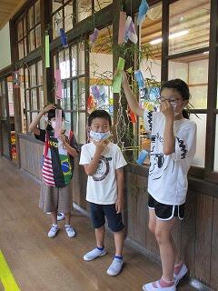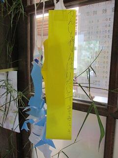 明日は7月7日、七夕です。1,2年生といづみ学級では、今年も短冊に願い事を書いて笹につるしました。