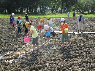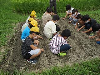 9月1日(水)、3,4年生が総合的な学習の時間の「農産物博士になろう」の学習で、学級園に大根の種を蒔きました。一人3粒ずつを大事そうに蒔いていました。これから水やりや草引きなどの世話をして育てていきます。