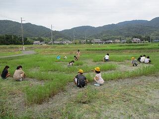 3,4年生が総合的な学習で取り組んでいるコスモス畑の草引きをしました。まだまだ残暑が厳しい毎日ですが、今日から9月。なんとなく秋の気配が感じられるようになり、早咲きのコスモスが花を咲かせています。毎朝、地域の炭本さんに草引きをお世話になり、くっきりとしたニコニコマークが見えています。秋本番には、きっときれいなコスモスの花が、秋風に揺れることだと思います。