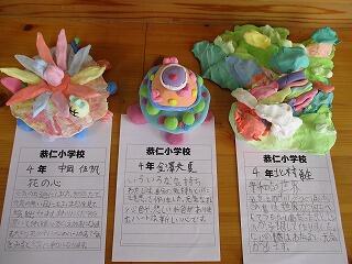 4年生が、図工の学習で粘土を使って立体作品を作りました。テーマは「元気のお守り」!それぞれが「元気」をイメージしながら、カラフルなお守りに仕上げました。