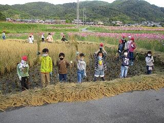 今日は稲刈りを始め、先日行った種籾から種を取って、後片付けまでよく働きました。今週木曜日には、石﨑さんにお世話になって籾すりの見学をさせていただきます。籾まきから収穫までをすべて体験できる米作りの学習は、恭仁ならではの特色ある教育活動の一つです。