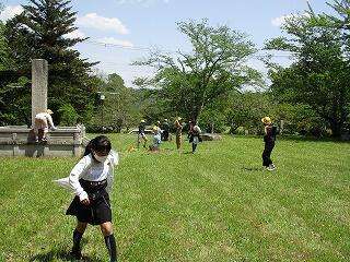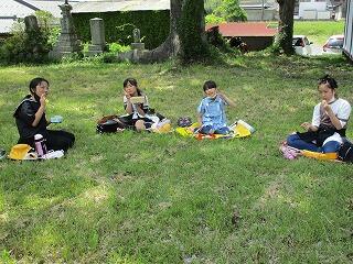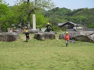 朝9時に出発した低学年が、恭仁京に戻ってきました。第一声は、広場を見て「遊びたーい!」や「お弁当、おいしかった!」。恭仁京で一休みした後は、鬼ごっこや虫取り、お花摘みなどに興じていました。