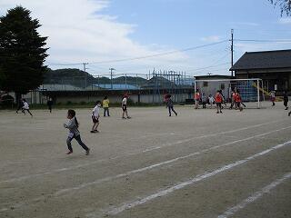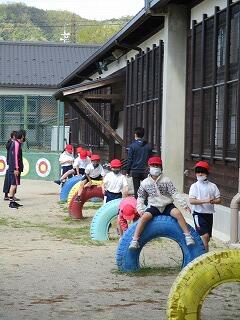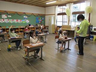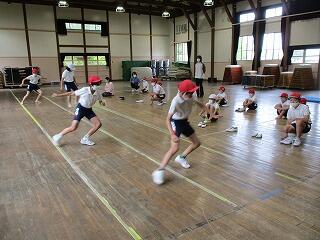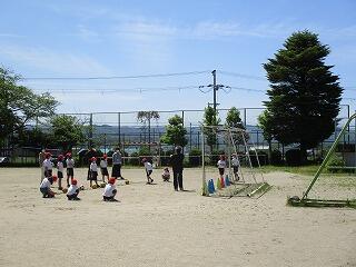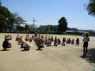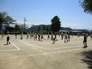 5月6日(木)のゴールデンウィーク明けは、爽やかな青空が広がる天気になりました。今日から2,3年生は合同で体育学習を始めした。普段は大変少ない人数で体育を行っていて、ゲーム運動などもなかなかできない状況ですが、合同体育は人数も増え、いろいろな競技にも取り組めます。また、3年生は、2年生のリーダーになって活躍する機会にもなっています。