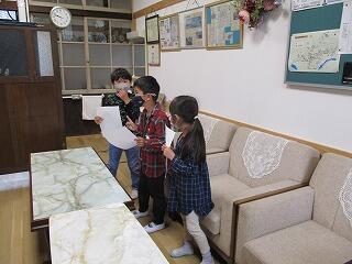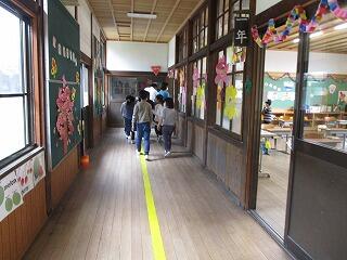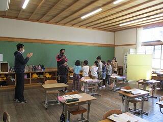 4月28日(水)の1,2校時に、2年生がリーダーになって学校の案内を1年生にしました。最初に2つのグループに分かれて自己紹介した後に、初めて入る職員室や校長室、いろいろな教具が置かれている特別教室を興味津々、2年生の説明を聞きながら楽しそうに見学していました。
