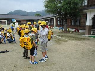 4月13日(火)の昼学習の時間に、初めての避難訓練を行いました。用務員室から火災が発生したという想定で、火災が発生した場合の対処や避難の仕方、避難経路を学びました。1年生は初めてでしたが、幼稚園や保育園の学びを生かして上手に避難していました。年間を通して、様々な災害に対する避難訓練を実施していきます。