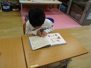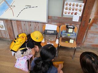 教室で、捕ってきた昆虫などをじっくり観察しました。