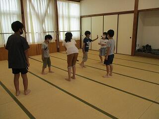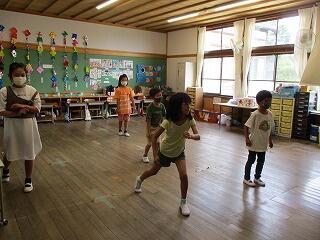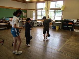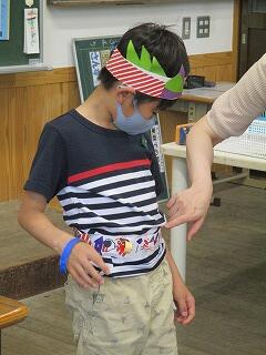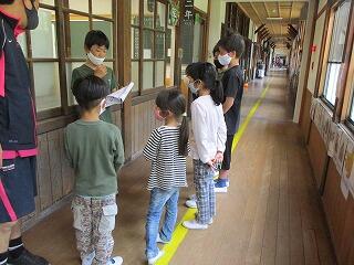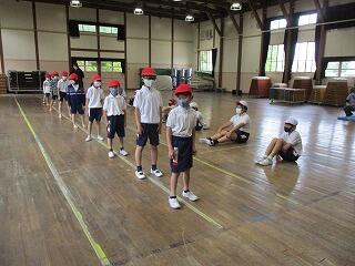 6月8日(火)、毎週火曜日は全校遊びの日です。今日は暑さ対策でなかよし班に分かれて室内遊びをしました。「思いやりハンカチ落とし」や「あっち向いてほいじゃんけん列車」、「一本足のかかしだるまさんが転んだ」など、工夫しながら小グループで楽しそうに遊んでいました。高学年は思いやりを持って接していて、みんなが一生懸命取り組んでいる姿がステキでした。