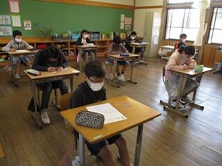 5月25日(火)の2校時に、梅雨の晴れ間を見つけて、高学年が運動場でシャトルランをしました。昨年は実施できませんでしたが、今年度はコロナ対応をしながら実施することができました。気持ちのよい爽やかな風が吹く中、自己ベストを目指して頑張っていました。