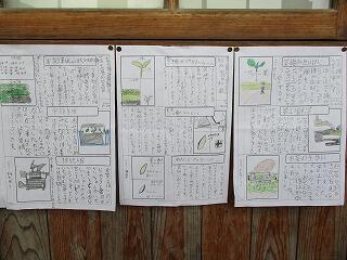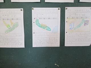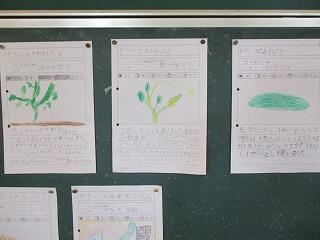 新学期が始まって、学習が少しずつ進んできました。廊下の掲示板等には、子どもたちの書写や絵画、学習プリントなどが掲示されています。
