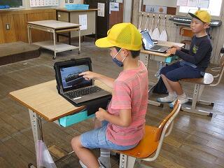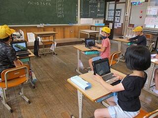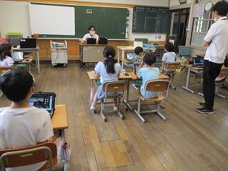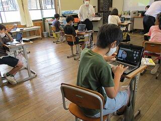 6月下旬に一人1台配備されているタブレットを自宅に持ち帰り、オンライン通信テストを行います。ICT支援員さんにお世話になり、接続するための練習を各学年行いました。随分スムーズにできるようになってきましたが、Wifi環境が影響して、つながったりつながらなかったりしました。それでも、子どもたちは熱心に学んでいました。