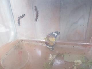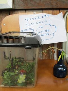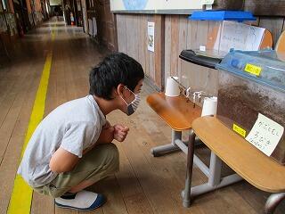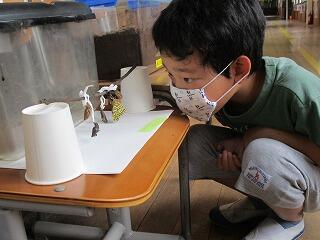 いづみ学級の前には、いろいろな生き物がいます。全校児童がチョウの羽化や蟻地獄に興味津々!廊下を通る度に観察しています。