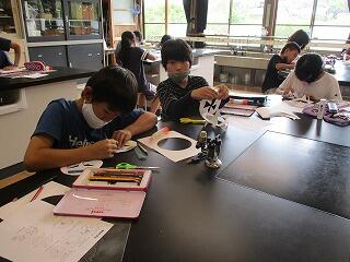 6月17日(木)の理科の時間に、6年生が顕微鏡を使って微生物を観察しました。顕微鏡の調節がなかなか難しく、動いている微生物を見つけられたときには大喜びしていました。目には見えない小さな小さな生き物がいることに気づきました。