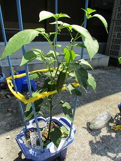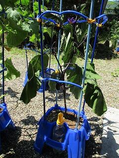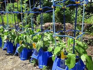 2年生は生活科で、自分が育てたい野菜を決め栽培しています。毎朝、水やりをしてすくすく育ち、ナスは花を付け、ミニトマトやピーマンは実ができていて、収穫が楽しみです。