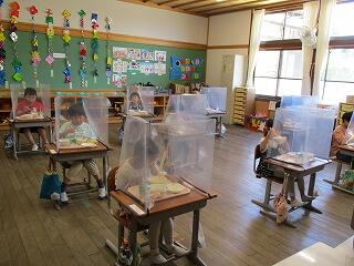 5月31日(月)、5月も早いもので最終日を迎えていますが、朝から梅雨はどこへ行ったと言わんばかりの爽やかな青空が広がっています。コロナワクチンの接種も徐々にではありますが進んできました。学校では感染予防のために給食時など、マスクを外す活動時にはアクリル板を使用し始めました。