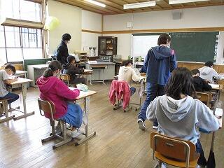 3月22日(月)の3校時に、3年生が1年生を招待して「おもちゃ広場」を開いてくれました。おもちゃは、3年生がこれまでに理科で学習したことを生かして作製したものです。各コーナー細かな工夫がされ、また、3年生は親切に1年生にやり方などを説明し、とても和やかで楽しい広場になりました。