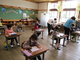 また、ひらがな学習も始まりました。正しい姿勢や鉛筆の持ち方を意識しながら、今日は「し」の練習や言葉を集めました。昨日からは宿題も出ています。今後も意欲的に学習に臨めるよう指導していきたいと思います。