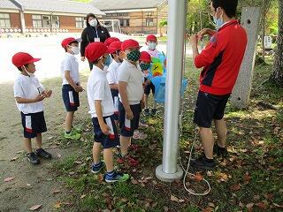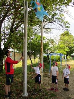 4月30日(金)、1年生が完成した鯉のぼりをみんなであげました。