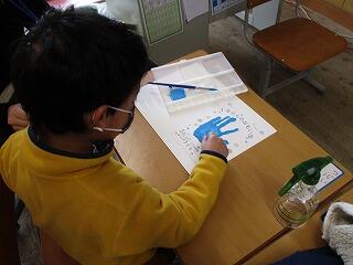1年生は、生活科の学習でこの1年間の思い出ファイルを作っています。その表紙には、自分の手形を押しました。いっぱい勉強して、いっぱい遊んで、できることがたくさん増えて身も心も頼もしくなりました。