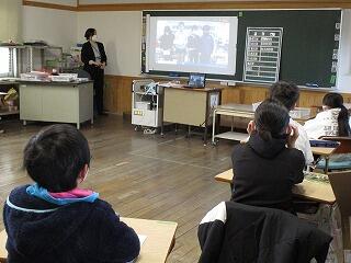 3月9日(火)、5,6年生が今年度最後の食育指導を栄養教諭の麓先生にお世話になりました。今回のテーマは、本日の献立にも使われていた「春の食材」です。木津川産の菜花を始め、春キャベツやアスパラガスなど、旬の食材を使った料理はとても美味しいものです。本日の菜花のサラダも「美味しかった」と感想を述べていました。