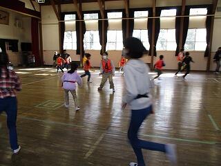 3月9日(火)、暖かな日差しの中、昼休みに全校遊びをしました。今日はあて鬼です。ボールを当てられたら鬼を交代します。最初は6年生が鬼をしてくれました。高学年は低学年をねらう際は優しく、高学年を当てるときは遠慮なく追いかけ思いっきり当てていました。ちょっとした気遣いが嬉しく微笑ましかったです。